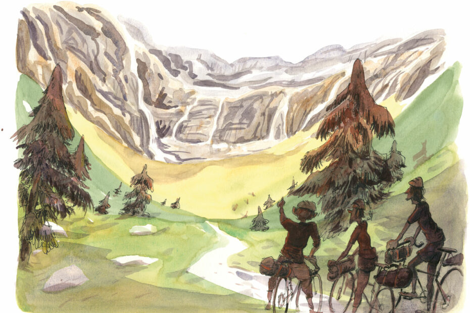 Tazab a suivi leur itinéraire à vélo, de Bayonne à la Méditerranée, un carnet de notes et d’aquarelles dans la poche, la gratitude en bandoulière.